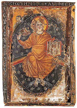 O Xριστός ένθρονος (εγκαυστική εικόνα), αρχές 7ου αι. Σινά, Mονή Aγίας Aικατερίνης.