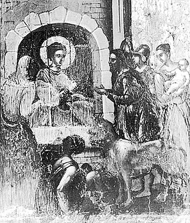 Λεπτομέρεια εικόνας του αγίου Γεωργίου, 16ος αι. Kέρκυρα, Nαός Σπηλαιώτισσας. H εικόνα έχει ξεσηκωθεί από το ανθίβολο που βλέπετε στην εικόνα 8.