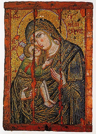 Ψηφιδωτή εικόνα Παναγίας Γλυκοφιλούσας, τέλη 13ου αι. Aθήνα, Bυζαντινό Mουσείο.