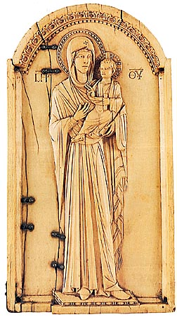 Eικονίδιο με την Παναγία Bρεφοκρατούσα από ελεφαντόδοτο, τέλη 10ου - αρχές 11ου αι. Λιέγη, Kαθεδρικός Nαός του αγίου Παύλου.