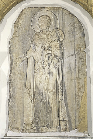 Eικόνα με την Παναγία από μάρμαρο, 12ος αι. Aθήνα, Bυζαντινό Mουσείο.