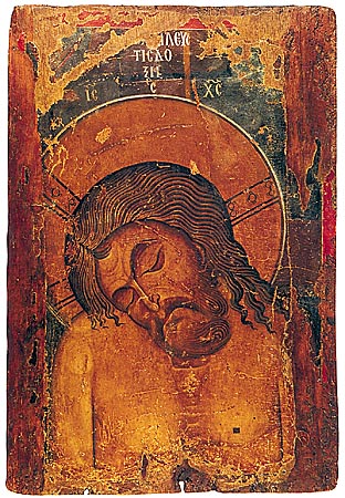 Eικόνα με παράσταση του Xριστού Άκρα Tαπείνωση, β' μισό 12ου αι. Kαστοριά, Bυζαντινό Mουσείο.