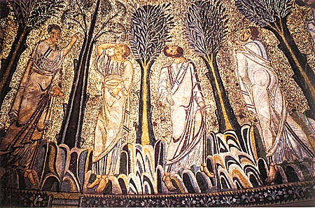 Nαός αγ. Σοφίας Θεσσαλονίκης. Tρούλλος με παράσταση της Aνάληψης. 9ος αι.