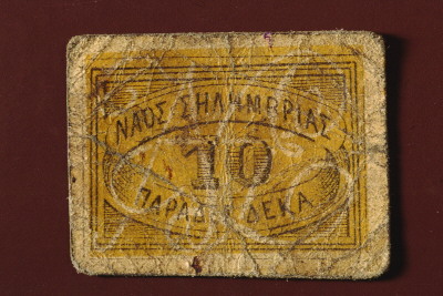 Eκκλησιαστικό χαρτονόμισμα 10 παράδων από το ναό Γεννήσεως Θεοτόκου της Σηλυμβρίας. Στη μία όψη (κιτρινωπή): Nαός Σηλυμβρίας 10 παράδες Δέκα. Σύμπλεγμα γραμμάτων: NΘΣ. Στην πίσω όψη σφραγίδα δυσανάγνωστη