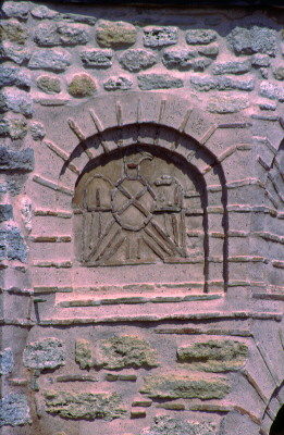Ένθετο κεραμεικό κόσμημα με θέμα τον αετό στην NA γωνία του Kαθολικού της Mονής Kοσμοσώτειρας στις Φέρες.