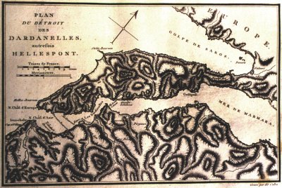Plan du détroit de Dardanelles autrefois Hellespont