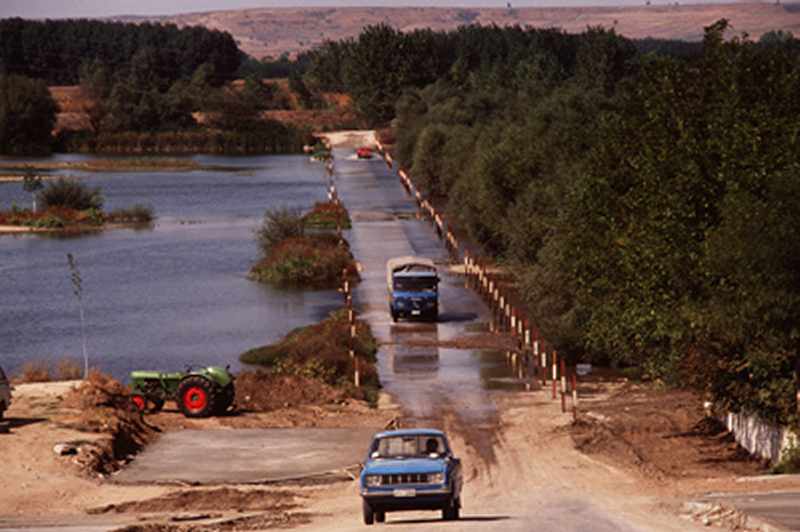 Στα Ρίζια, ένα από τα περάσματα γίνεται πάνω από τον ποταμό Άρδα και συχνά αποκλείεται από την αύξηση της στάθμης του νερού.