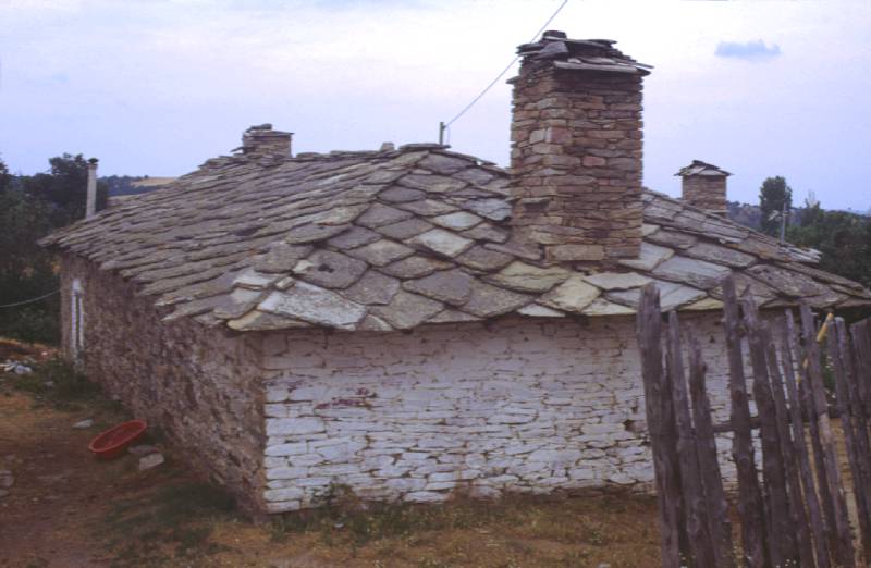 Xαρακτηριστικό σπίτι στο χωριό Pούσσα και λεπτομέρειες από τις στέγες.
